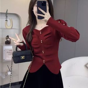 方领褶皱毛衣打底衫女秋冬高级感别致漂亮洋气时尚内搭针织衫上衣