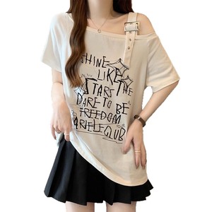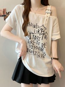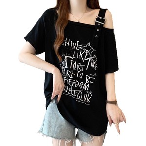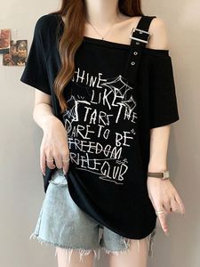 新款纯棉美式辣妹斜肩短袖t恤女夏季设计感露肩甜酷宽松显瘦上衣