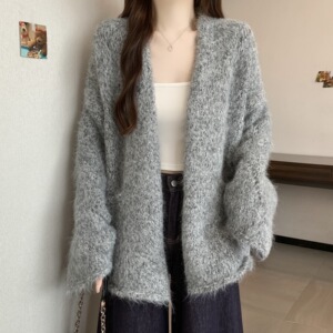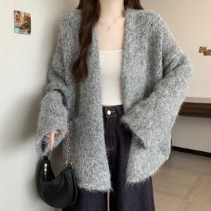 大码2025秋冬新款胖mm高级感宽松慵懒风中长款针织开衫外套 潮