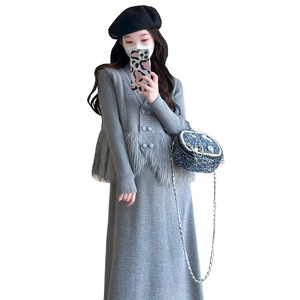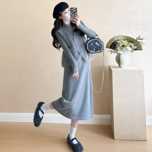孕妇装春秋套装时尚款新款宽松针织孕妇连衣裙两件套