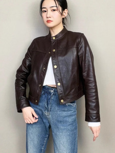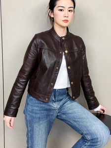 海宁2025秋季新款真皮皮衣女短款高级感圆领绵羊皮夹克植鞣皮外套