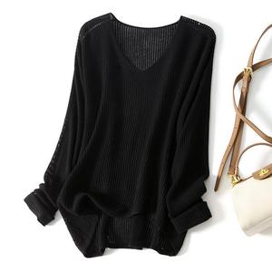 秋冬新款2-300斤大码镂空针织衫女胖MM宽松显瘦长袖T恤毛衣打底衫