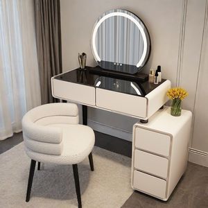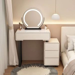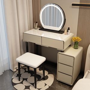 岩板收纳柜一体梳妆台卧室奶油风迷你小型现代简约化妆台