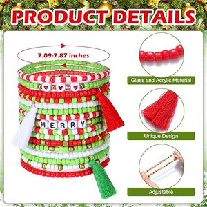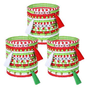 欧美风格亚马逊爆款圣诞节手链套装红蓝绿圣诞主题色软陶弹力手链