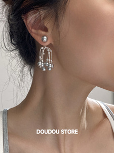 冷超仙流苏珍珠耳环原创设计感温柔优雅女