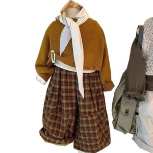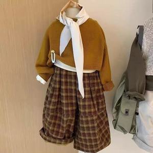 韩版男女童套装2025新款秋季洋气宝宝时髦针织衫格子休闲裤两件套