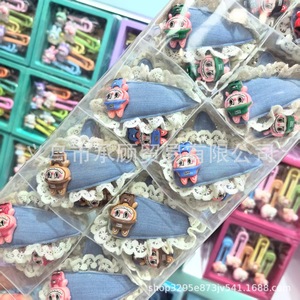 网红爆款可爱拉布布卡通蕾丝花边牛仔布艺儿童BB夹懒人夹少女边夹