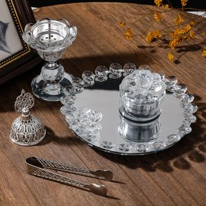 银色旋转镜面托盘香薰炉套装客厅熏香摆件阿拉伯玻璃香炉套装