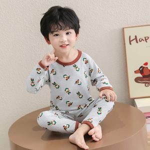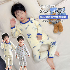 儿童纯棉睡衣秋冬男女童韩系无骨舒适家居服套装保暖宝宝长袖长裤