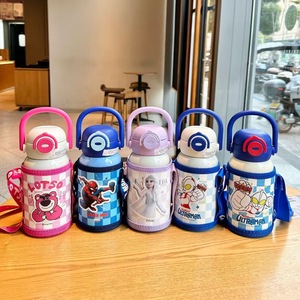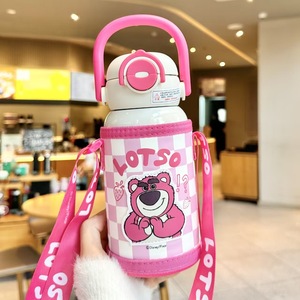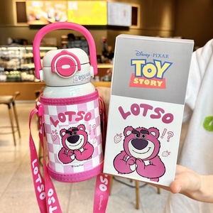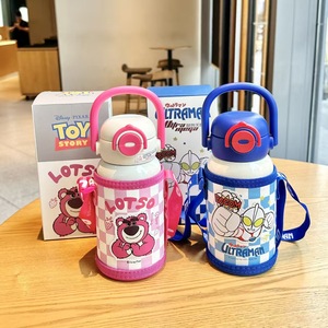 史迪奇保温杯吸管水杯上可爱学生双饮弹跳手提杯子背带户外保温壶
