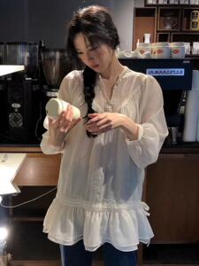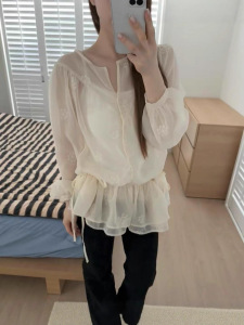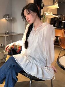 南法序曲2025秋季重工立体花朵抽绳衬衫韩代款设计感衬衣女高级感
