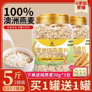 燕麦片5斤2罐即食冲饮精老人代早餐麦片健身食品未脱脂纯麦片包装
