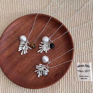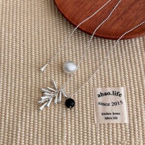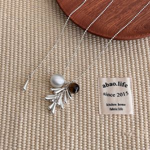 韩版博主同款天然石水滴圆球项链女小众设计抽拉式百搭毛衣链配饰