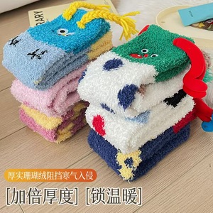秋冬新品女士家居珊瑚绒柔软中筒袜ins潮搞怪水果系列加厚保暖