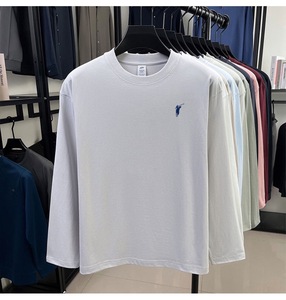 100%纯棉长袖圆领T恤男士春秋季休闲百搭吸汗透气打底衫上衣男