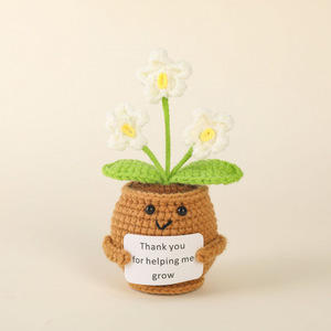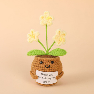 跨境热卖搞怪表情盆栽玩偶正能量毛线针织盆栽摆件 车挂件情感卡