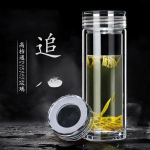 钢化双层玻璃杯防摔打不碎的加厚办公防爆男女携防保温杯子滤泡茶