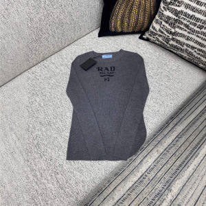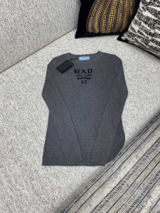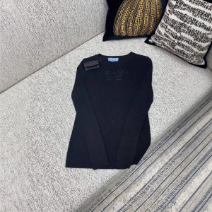 南油女装高定PD普家24早春新款蓝色圆领短款毛织衫漏腰修身羊毛衣