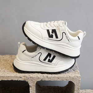 1337253真皮女2025新款春秋季厚底运动休闲鞋百搭小白