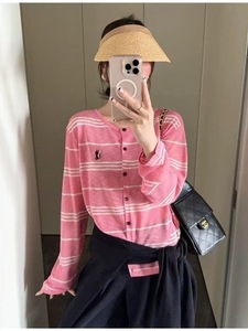 欧洲站2025夏季新款欧货短款撞色刺绣单排扣亚麻冰丝针织开衫上衣