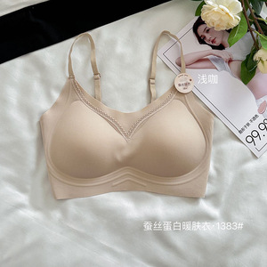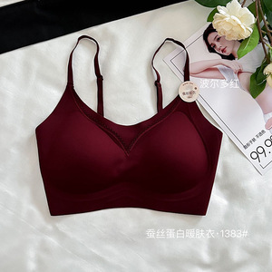 女士无痕细肩带双面磨毛无磁暖肤衣小云肌无钢圈固定杯1383美背