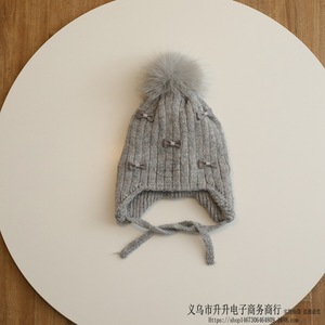 2025冬季新款女中大儿童双层保暖护耳满蝴蝶结大毛球毛线帽子