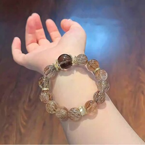 天然黑金超七手串顺发丝金闪黑超七水晶钛晶手链时尚简约手饰批发