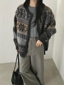 设计感民族风重工费尔岛提花毛衣开衫女秋冬加厚韩系宽松针织外套