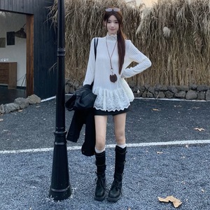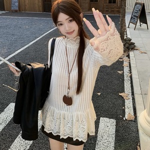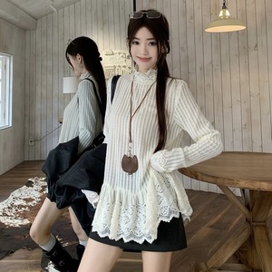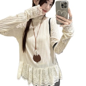 设计感小众上衣女装蕾丝花边长袖套头T恤秋季新款别致内搭打底衫