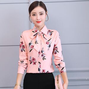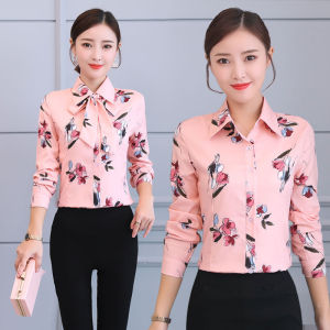衬衫女长袖新款春秋韩版印花衬衣女显瘦雪纺衫女百搭翻领打底衫女