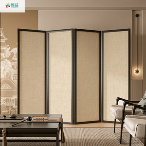 楠益茶室禅意日式奶油风实木新中式屏风隔断客厅折叠移动家用遮挡