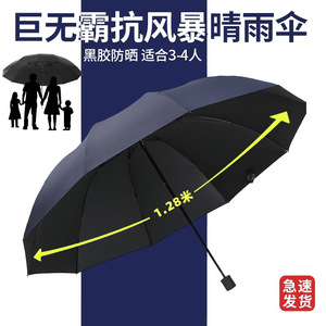 超大三折伞【曜石黑-直径128cm】超强抗风暴★伞下可站3-4人