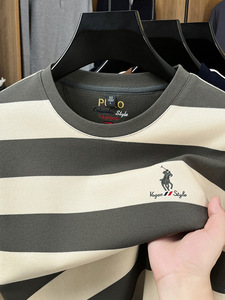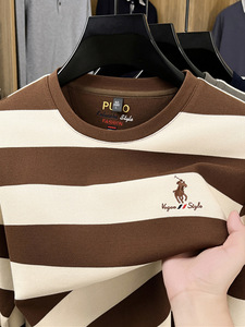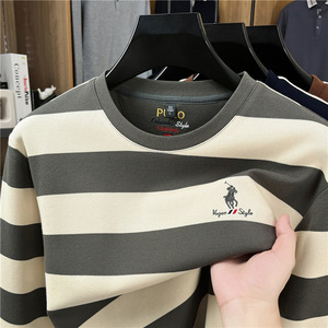 保罗卫衣男潮流春秋中年男士圆领条纹帅气宽松可外穿刺绣打底上衣