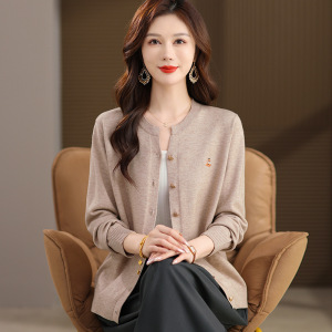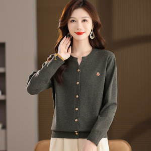 2025新款妈妈洋气小外套中年女针织开衫中老年春秋冬刺绣上衣开衫