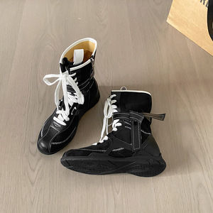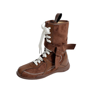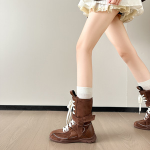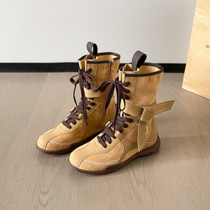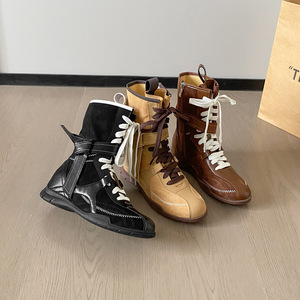 秋季时髦拳击女靴子2025新款复古拼色中筒靴侧拉链猎装德训马丁靴