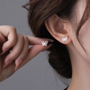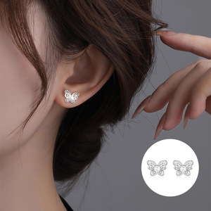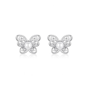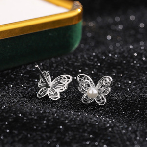 帝丰s999足银蝴蝶耳钉女小众设计感镂空精致耳环珍珠气质时尚耳饰