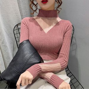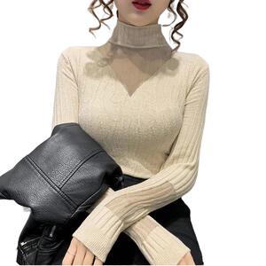黑色蕾丝秋冬内搭半高领薄款毛衣女新款外穿时尚针织打底衫上衣潮