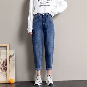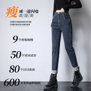 哈伦牛仔裤女高腰宽松显瘦蓝灰九分2025秋冬季弹力直筒老爹女裤子