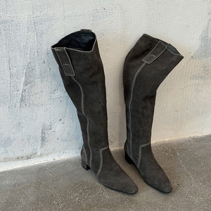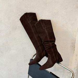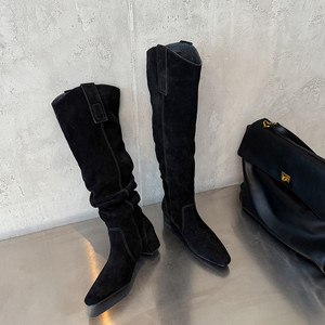 2025秋冬新款高筒靴中跟长筒堆堆靴宽筒欧美风百搭方头粗跟长靴女