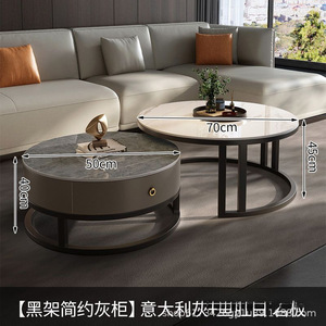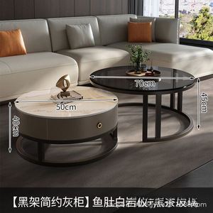 轻奢伸缩岩板茶几客厅家用小户型简约现代阳台小桌子圆形组合茶桌