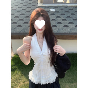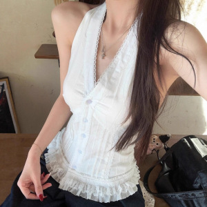 法式蕾丝挂脖吊带背心女夏季气质开衫外穿绝美显瘦鱼骨无袖上衣女