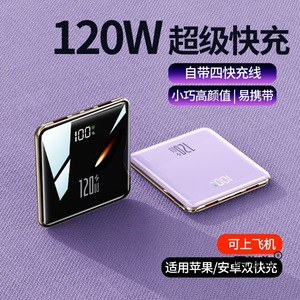 3C认证充电宝可上飞机超薄迷你自带线快充移动电源120W快充