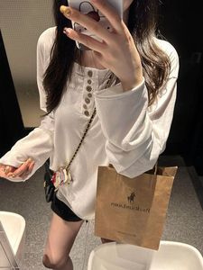 【雪花棉】秋季韩系白色不规则扣子长袖t恤女薄款防晒罩衫上衣