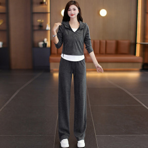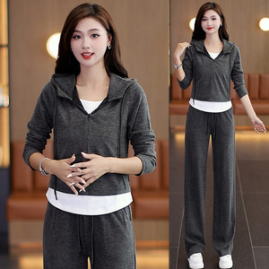 连帽卫衣女装假两件套装女2025春秋休闲小众韩版时尚显瘦卫衣套装