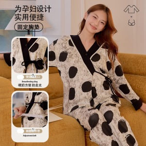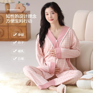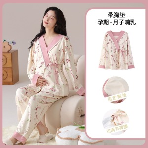 2025秋冬新款睡衣女士精梳棉月子服长袖套装带胸垫孕妈哺乳家居服