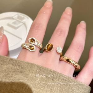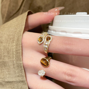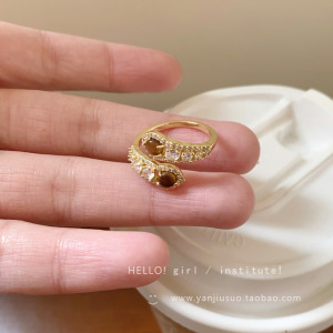 美拉德蛇形虎眼石戒指女2025新款轻奢高级感指环本命年独特食指戒