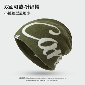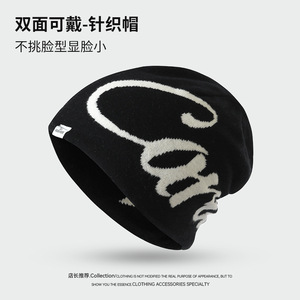 提花针织帽时尚百搭保暖秋冬季防寒保暖大头围显脸小素颜时尚冷帽