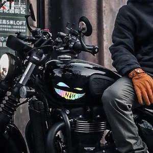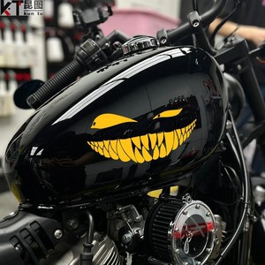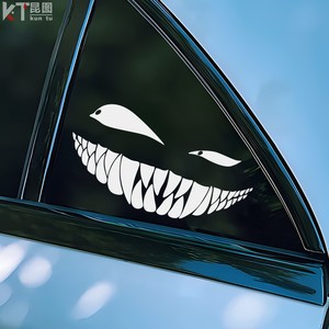 斜眼坏笑尖牙齿汽车贴纸电动摩托车风挡前脸卡通表情反光装饰车贴