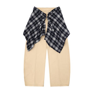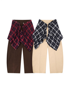 ACTORWET休闲长裤牛仔秋款格子屁帘阔腿裤洋气百搭女孩潮酷韩版裤