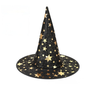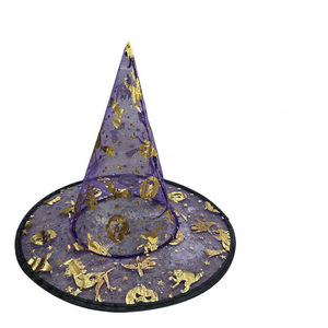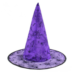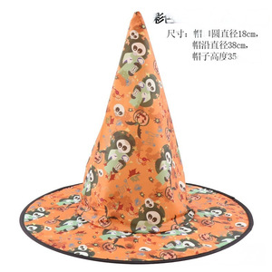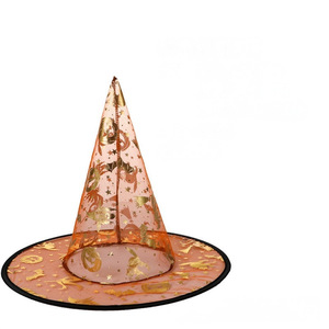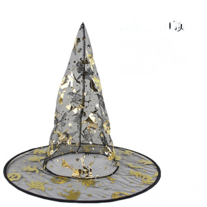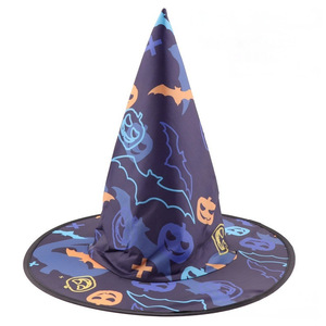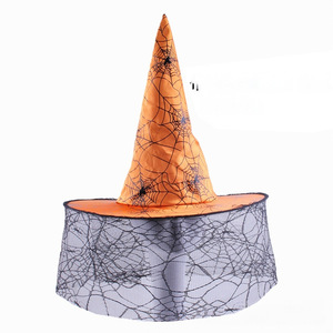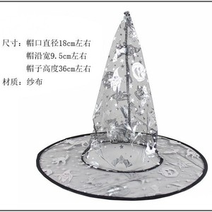 万圣节舞会派对帽子巫婆帽子巫师帽纱帽印花南瓜帽黑尖帽子